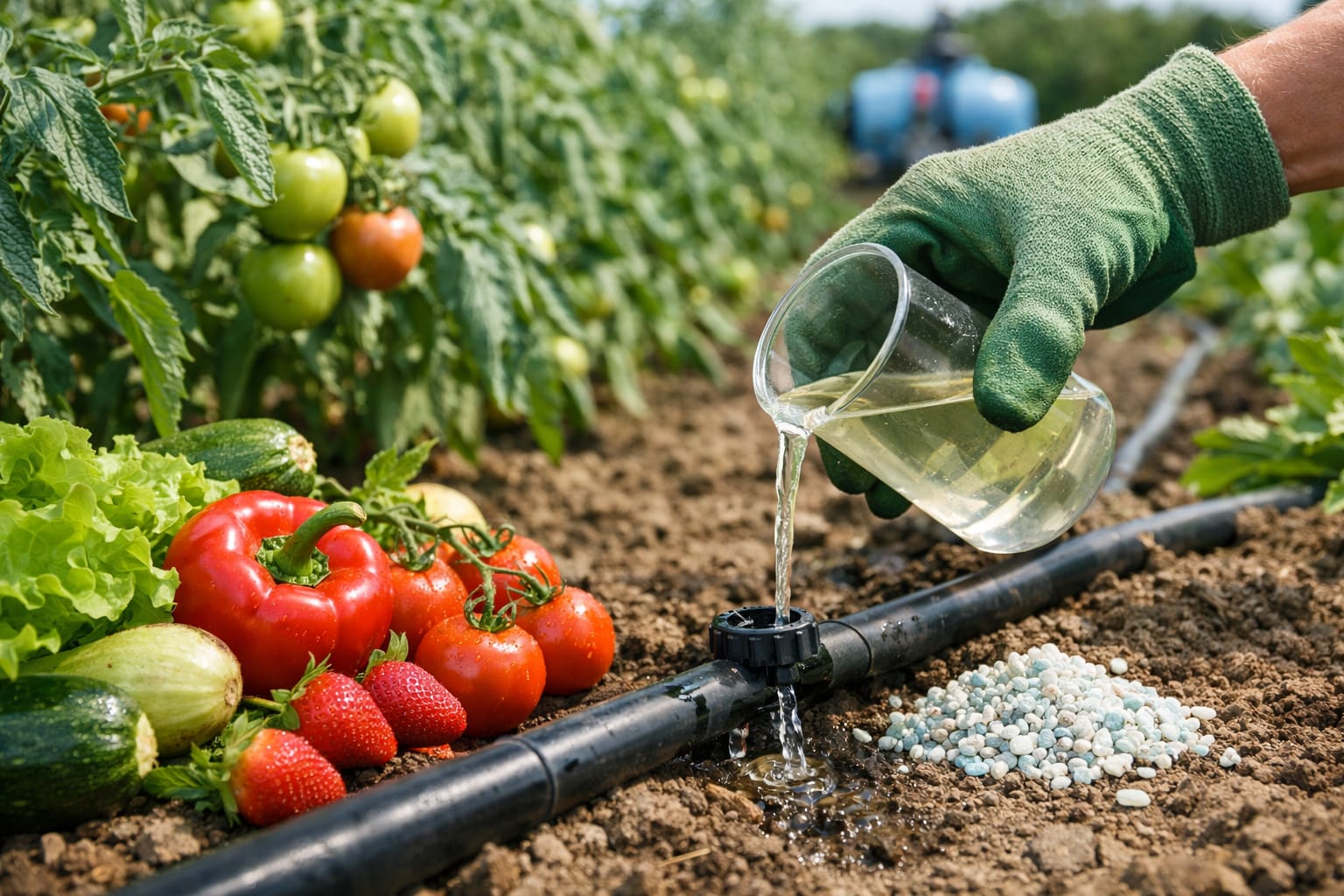 Manejar equipos de inyección de fertilizantes y control de soluciones nutritivas.